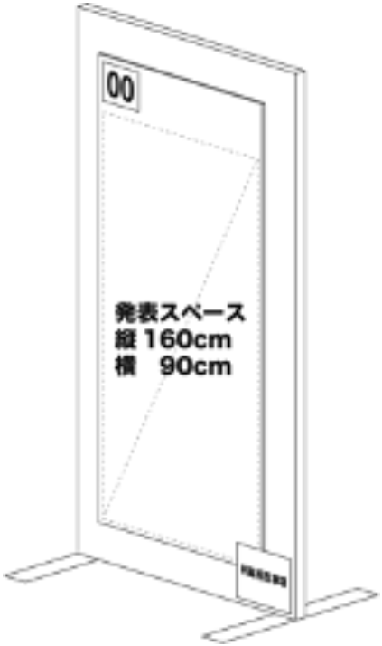 (原則発表前に掲示、発表当日に撤収となります。) - 発表スペースの大きさは縦160cm、横90cmです。 発表内容はボードから離れても判読できるよう見やすくしてください。 文字や図表も十分読み取れる大きさにしてください。